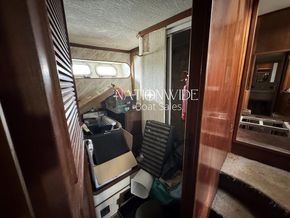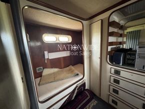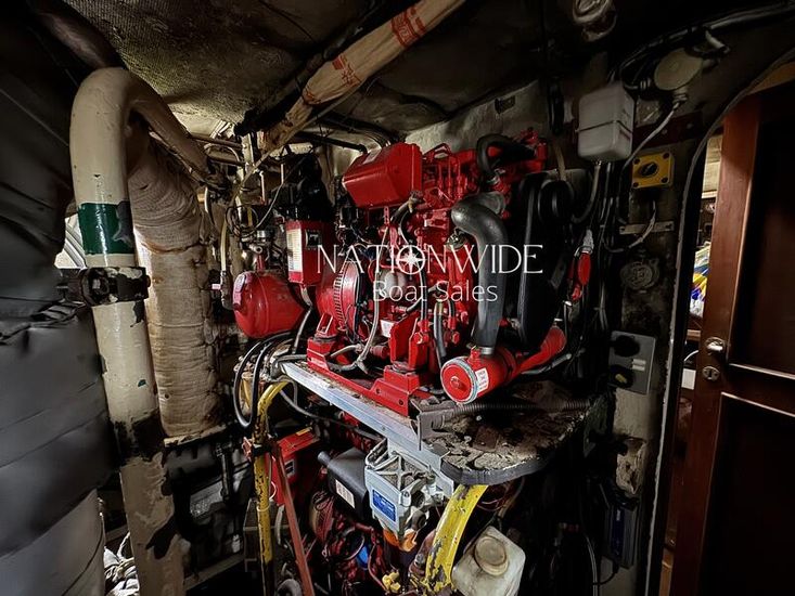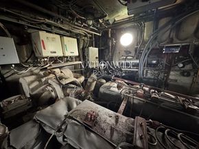 Powered by twin Hensel V12 turbocharged engines, each producing 1,100hp, you can cruise from either the main control deck or the flybridge. Onboard, you'll find two Victron Phoenix Multi Plus 2kw inverter/chargers, two large generators, a tender lift at the stern, plus radar and compass for navigation. The galley is home to an oven, fridge, separate large freezer and washing machine. The saloon serves as a central hub, leading to the lower deck with sleeping accommodations.