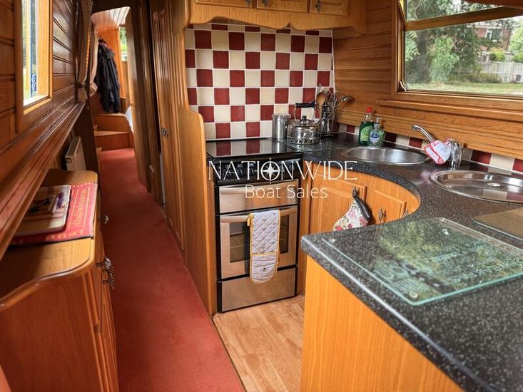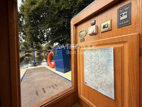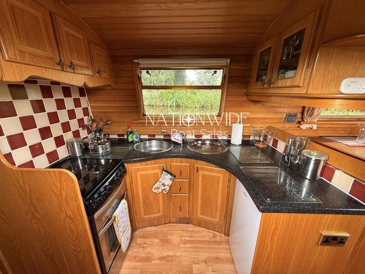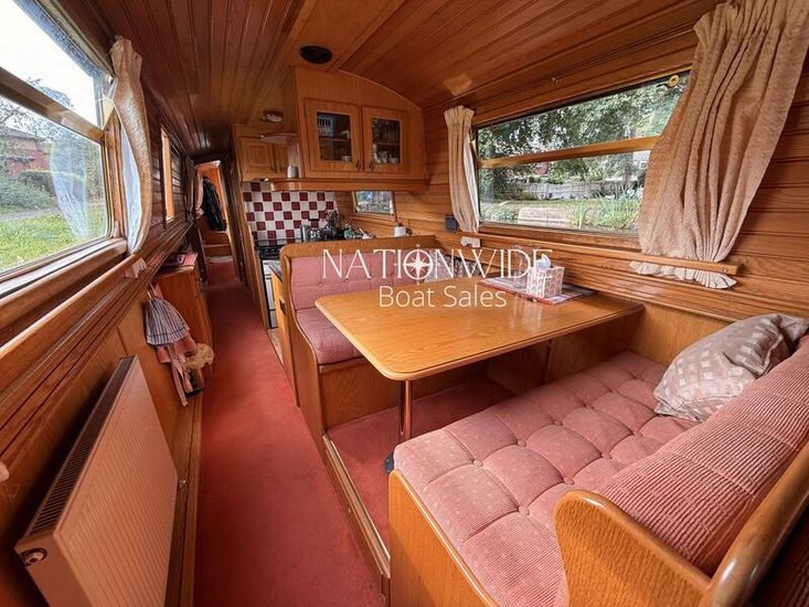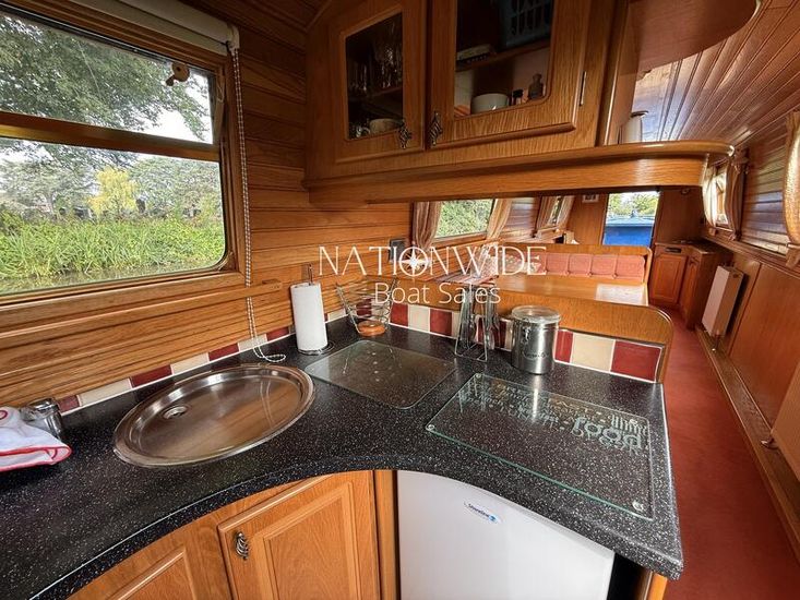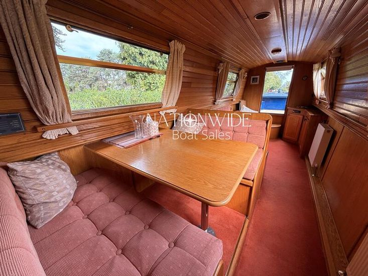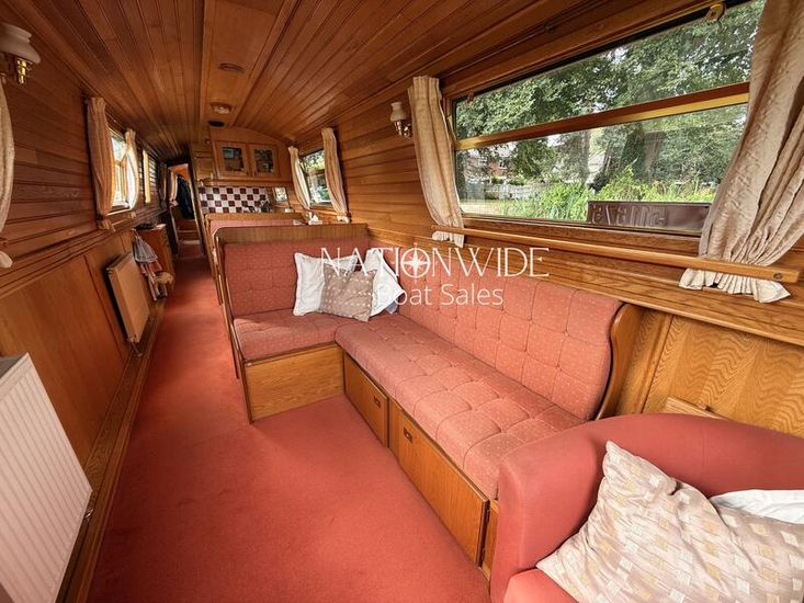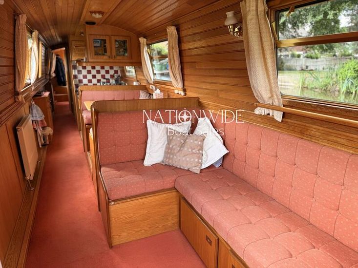 Her well-balanced layout begins with a sociable cruiser stern, offering ample space for relaxed cruising. Inside, the cabin sides are finished in oak tongue and groove with a mix of carpet and laminate flooring underfoot, creating a warm and inviting interior. Spray foam insulation and top-opening windows ensure year-round comfort, while thoughtful touches make her a practical and homely choice for extended cruising.